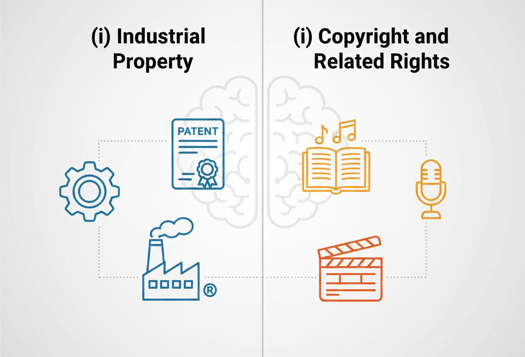 WIPO categorizes IP into two major branches: (i) Industrial Property and (ii) Copyright and Related Rights, each governed by distinct mechanisms and protection standards [1].
